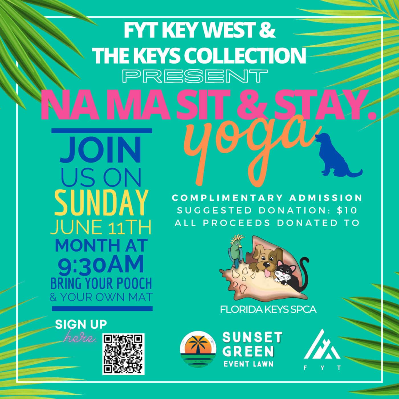 Be sure to join us Sunday, June 11th, at 9:30am for “Na Ma Sit & Stay” Yoga! Presented by FYT Key West and The Keys Collection join us at Sunset Green Event Lawn at The Keys Collection for a complimentary session of Yoga.